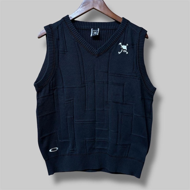 ◆商品 oakley オークリー ニットベスト Vネック 黒 ブラック ◆状態 目立った傷やヨゴレ無し ◆カラー ブラック ◆SIZE 表記M 着丈61 肩幅38.5 身幅51