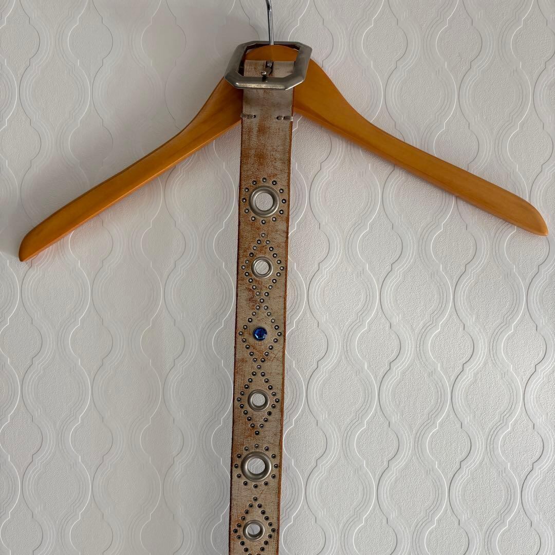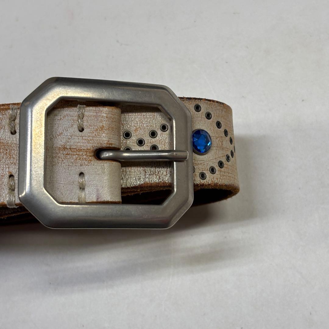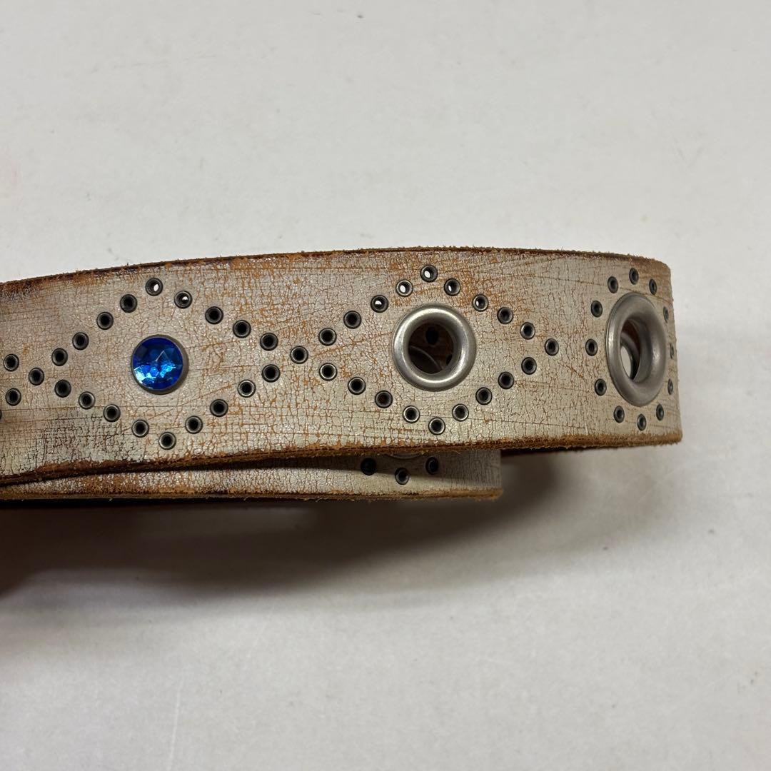 スタッズベルト 古着 サファイア ブルー 本革 レザー