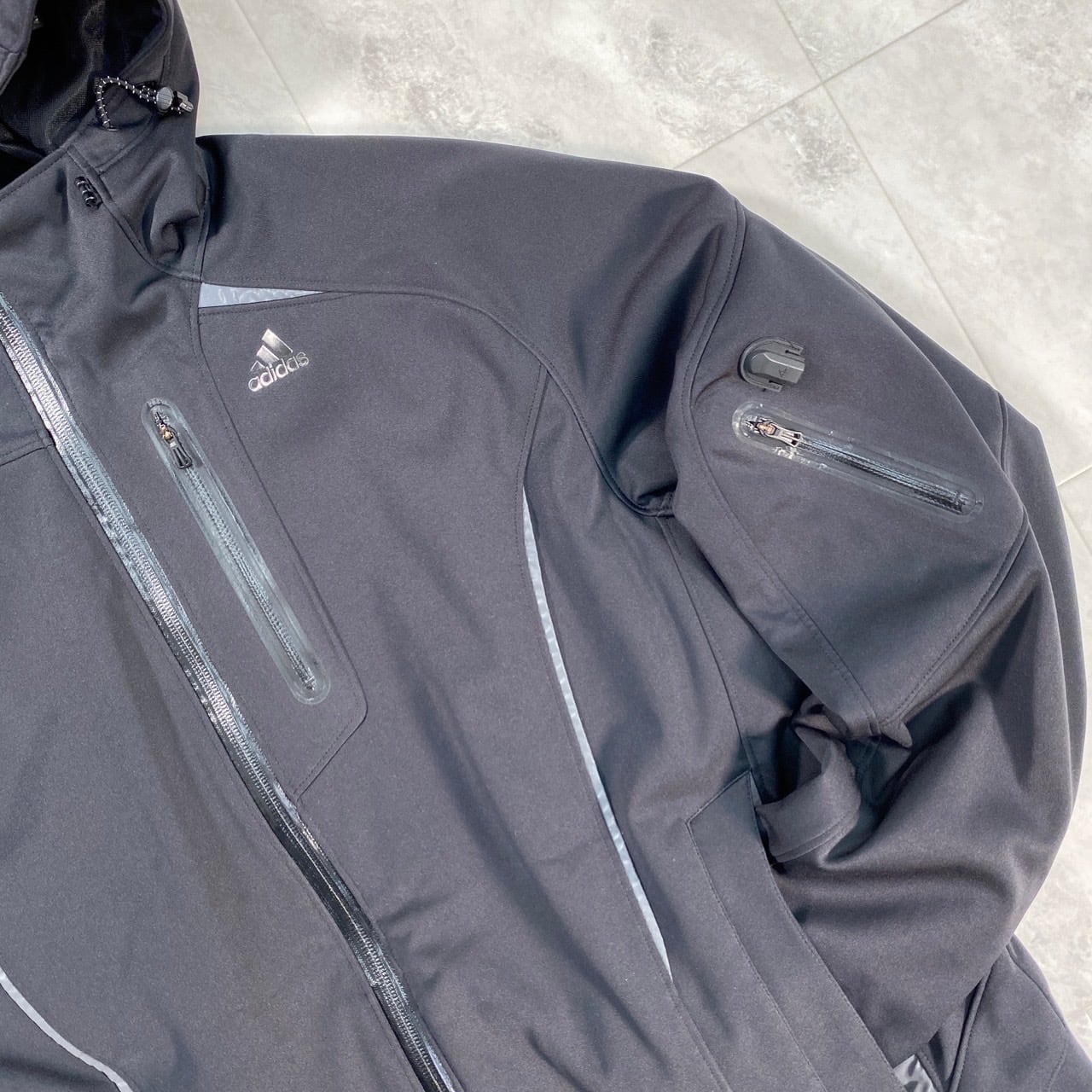 また袖ポケットからはイヤホンを通して首まで密着するように考えられた構造美。