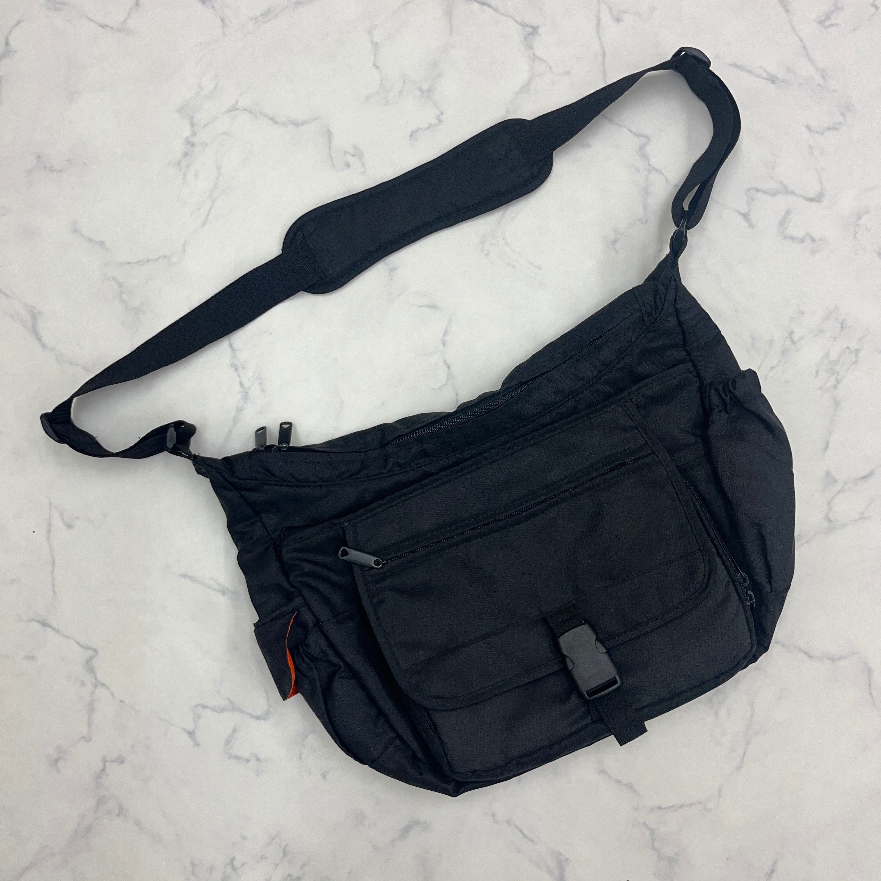 多収納 大容量 ショルダーバッグ メッセンジャーバッグ ブラック 黒 y2k テック系